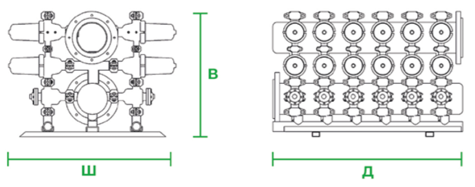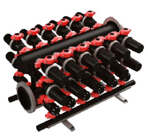 Система серии Н представляет собой горизонтальную батарею пар фильтров. При такой компоновке достигается большая плотность фильтров, увеличение фильтрующей поверхности при малой занимаемой площади. Режим промывки фильтров программируется на контроллере по разнице давлений или/и по времени. Промываются попарно, мощность потока очистки удваивается. Системы могут быть укомплектованы дополнительными опциями.