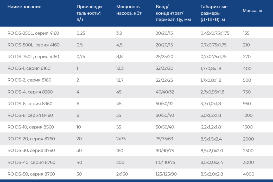 Системы опреснительной серии предназначены для глубокой очистки и обессоливания солоноватой и морской воды (степень очистки до 99 %) с целью дальнейшего использования в качестве питьевой воды или технологических нужд.