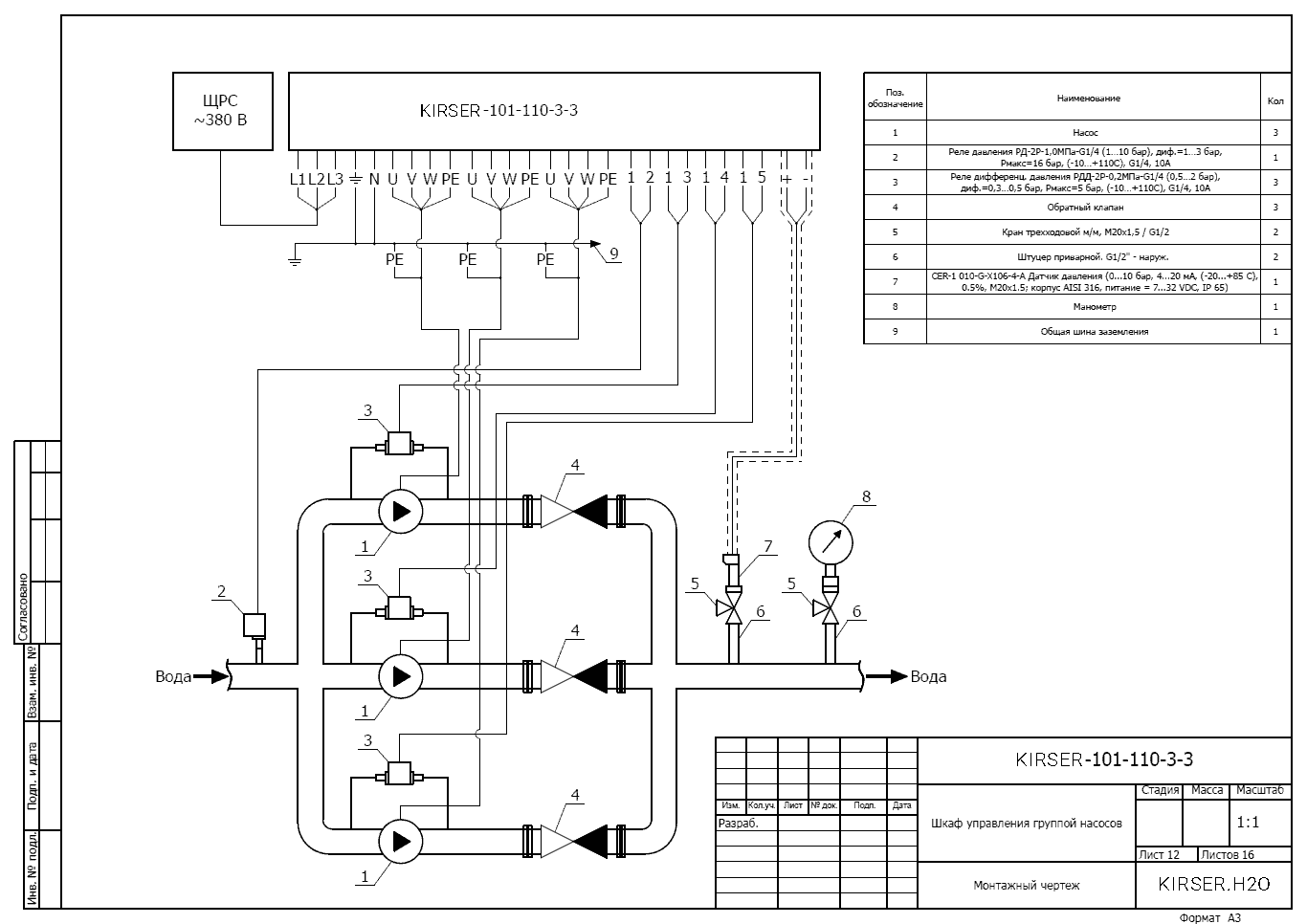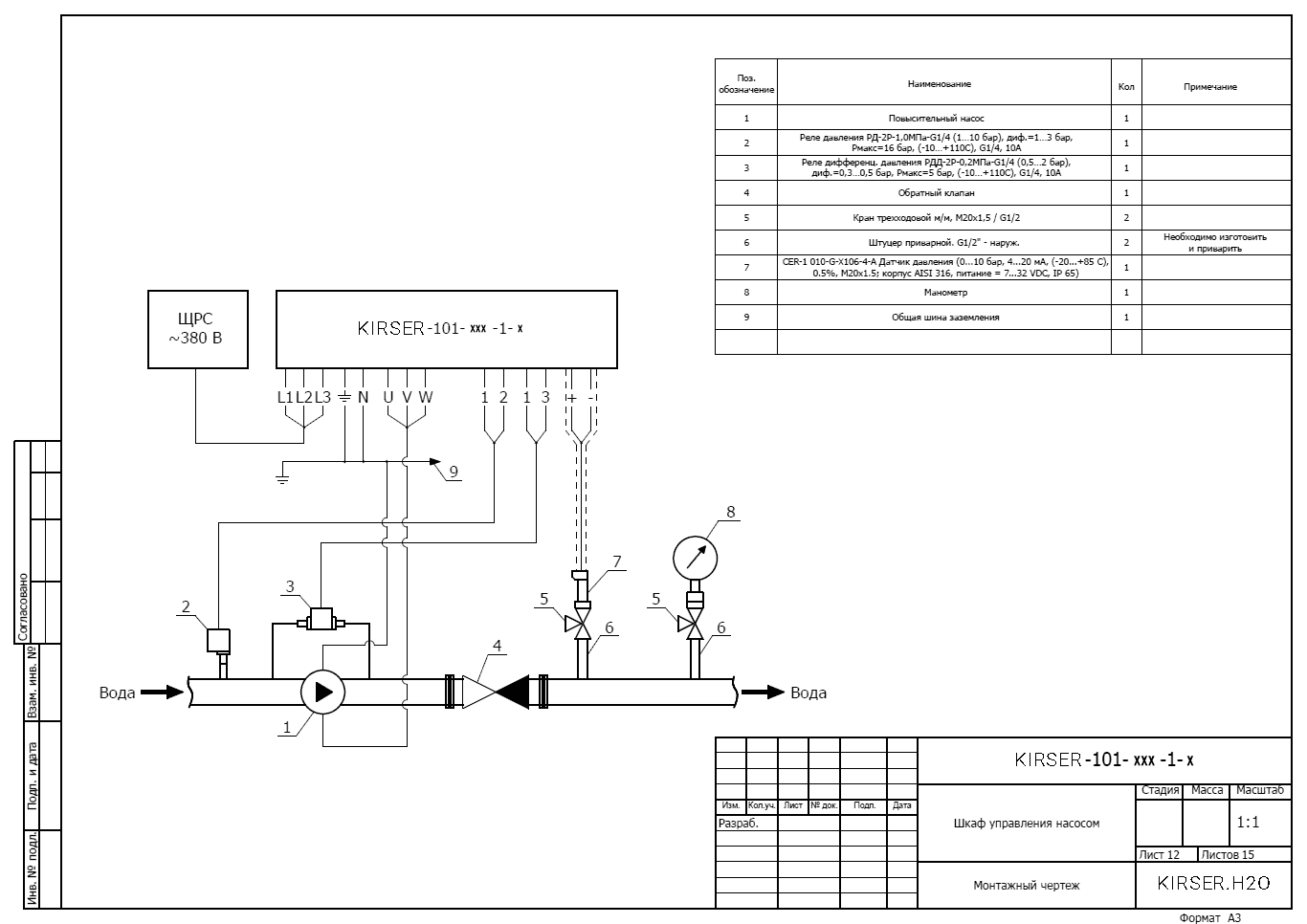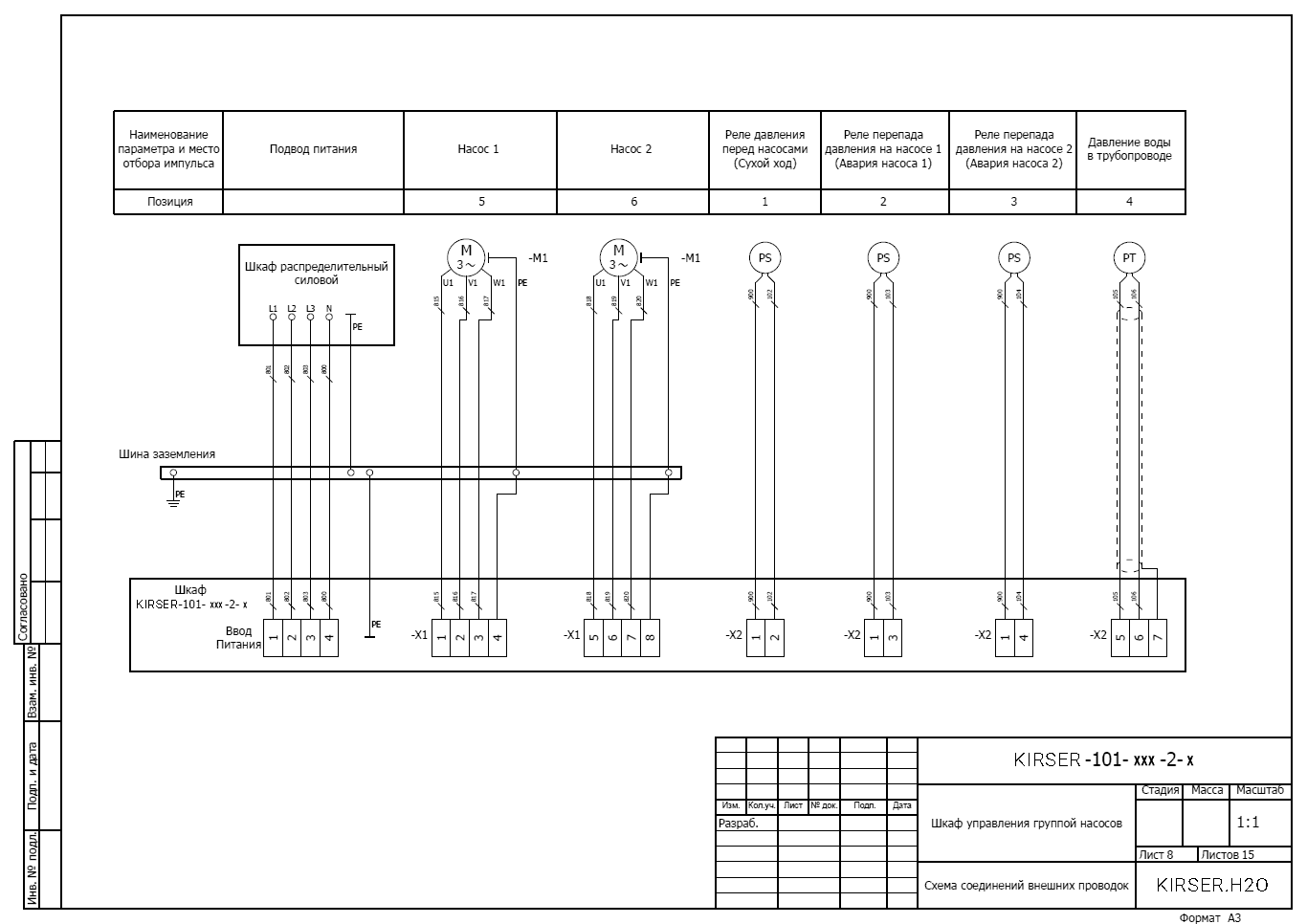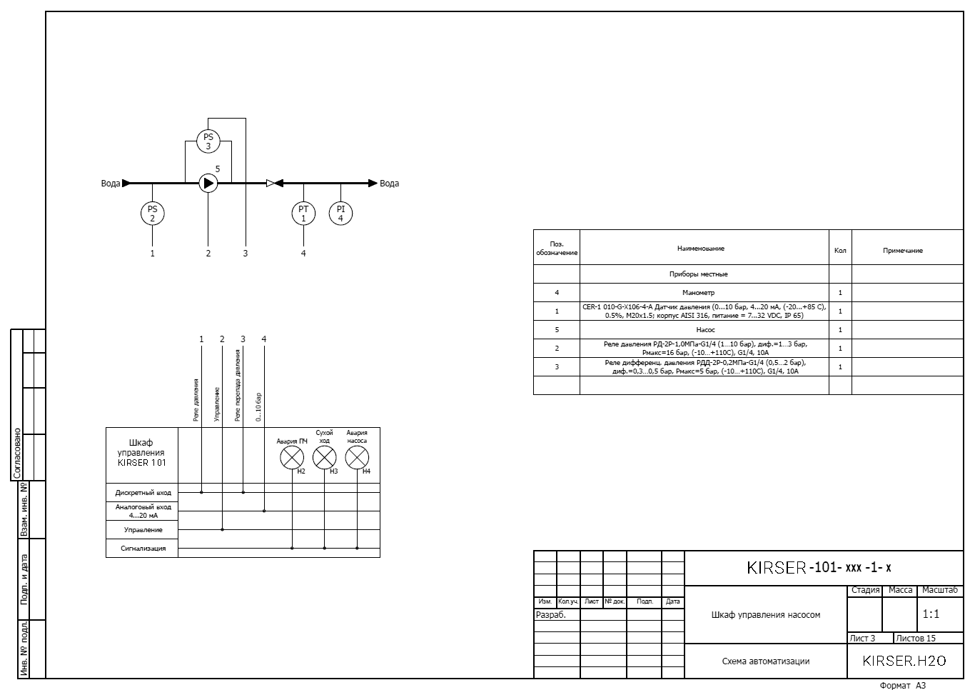 KIRSER 101 поставляется с уже запрограммированным алгоритмом и соответствующими документами для правильной эксплуатации. В связи с чем, срок монтажа и ввода насосной станции в эксплуатацию значительно сокращается. Специально разработанное меню на русском языке позволяет быстро сконфигурировать KIRSER 101 под конкретный объект.