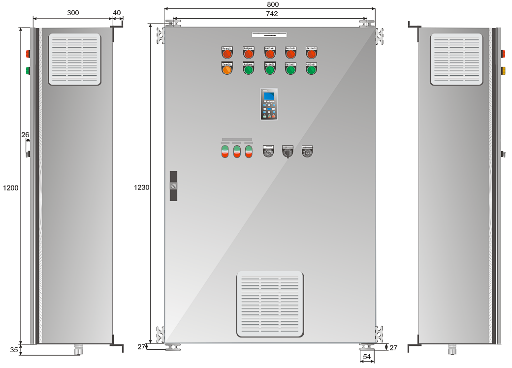 Шкаф управления KIRSER 101 обеспечивает плавный пуск и остановку двигателя. Преимущества плавного пуска можно разделить на электрические и гидравлические.