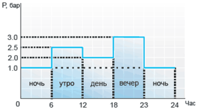 Автоматический: автоматическая программная смена уставки в зависимости от времени суток: утро, день, вечер, ночь. Имеется возможность корректировать диапазон времени и значение уставки в этом диапазоне.